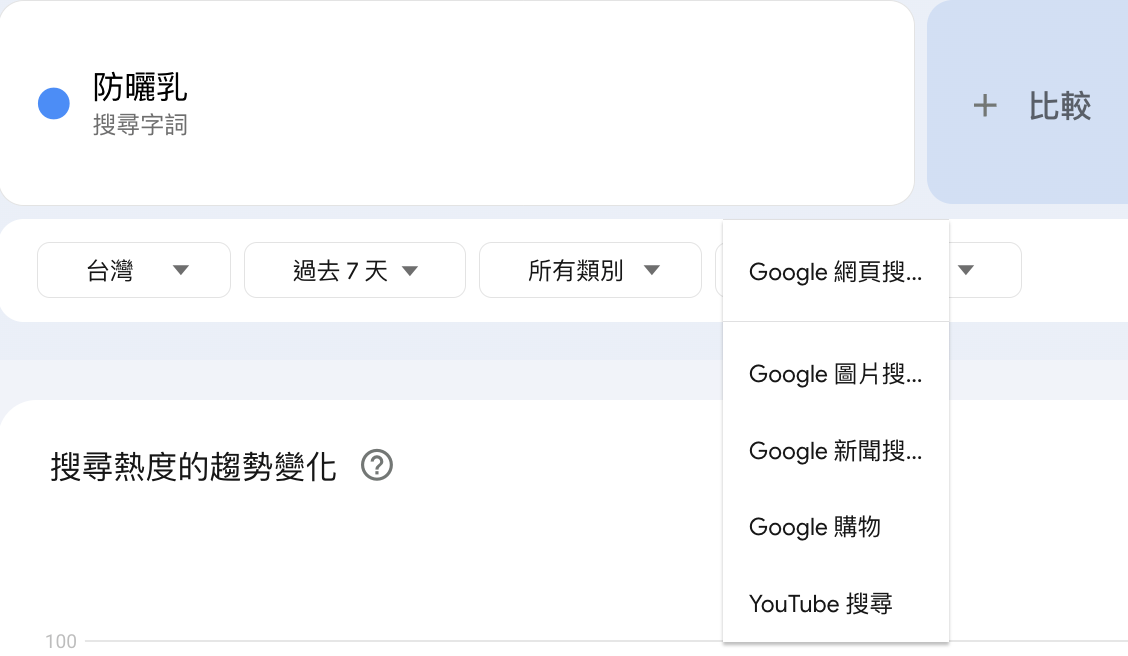 - 比較不同關鍵字的搜尋熱度
