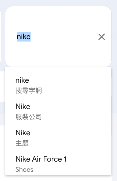 - 「搜尋字詞」vs「主題」:輸入時會跳出下拉選單,「主題」涵蓋的範圍比「搜尋字詞」更廣。比如選「Nike」主題會包含所有與 Nike 相關的搜尋,而不只是搜尋「Nike」這個字的人。
