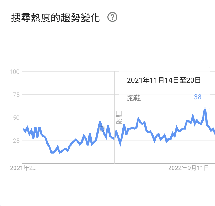 在 Google Trends 上搜尋「跑鞋」,設定時間為過去 5 年,你會看到一個規律: