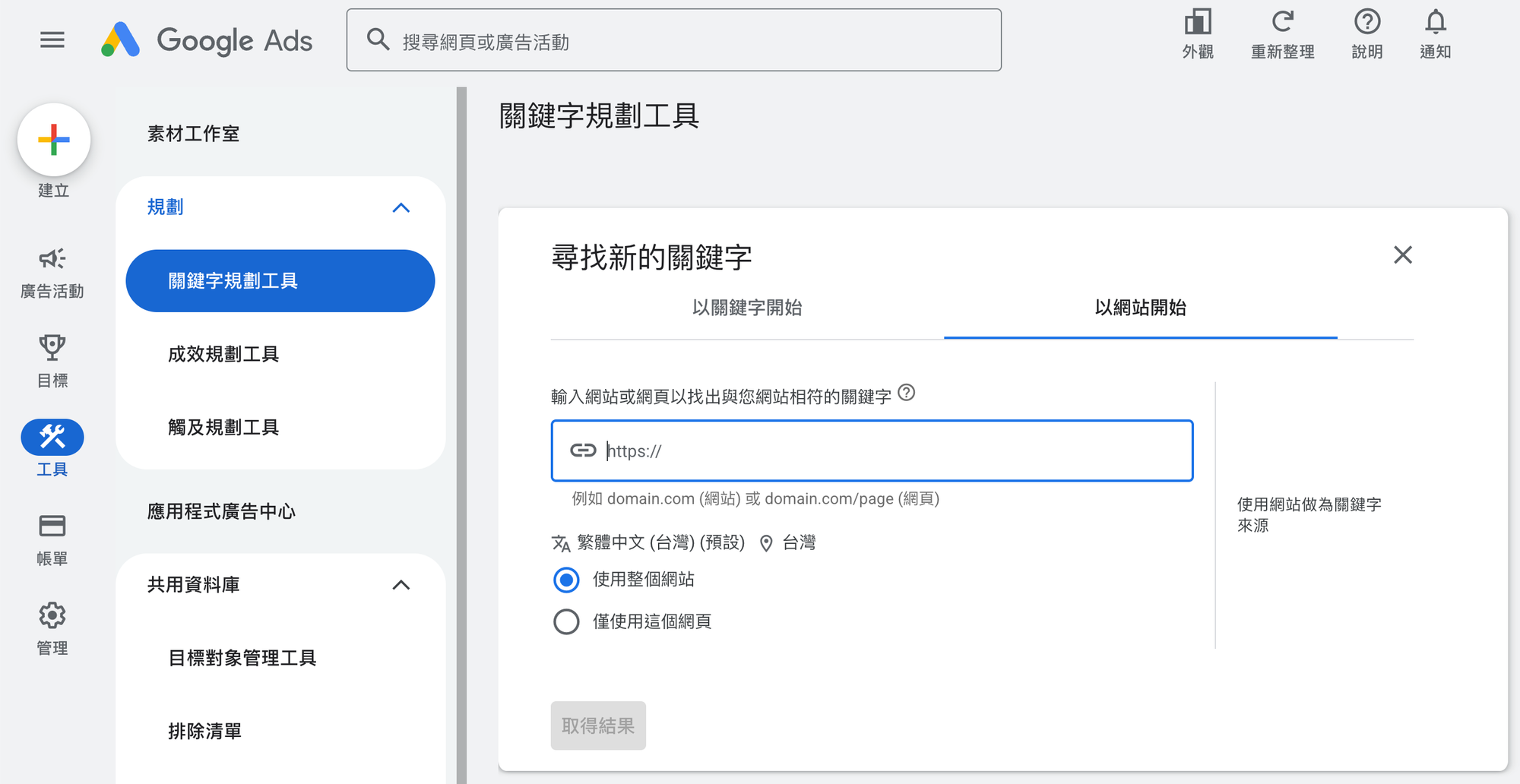 前置作業:打開 Google 關鍵字規劃工具